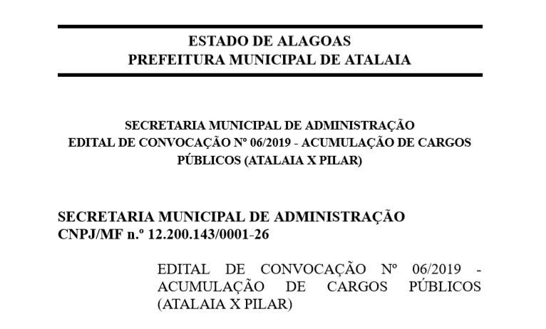 Prefeitura divulga Editais de Convocação Nº 04, 05 e 06 de 2019 com relação a acumulação de cargos públicos
