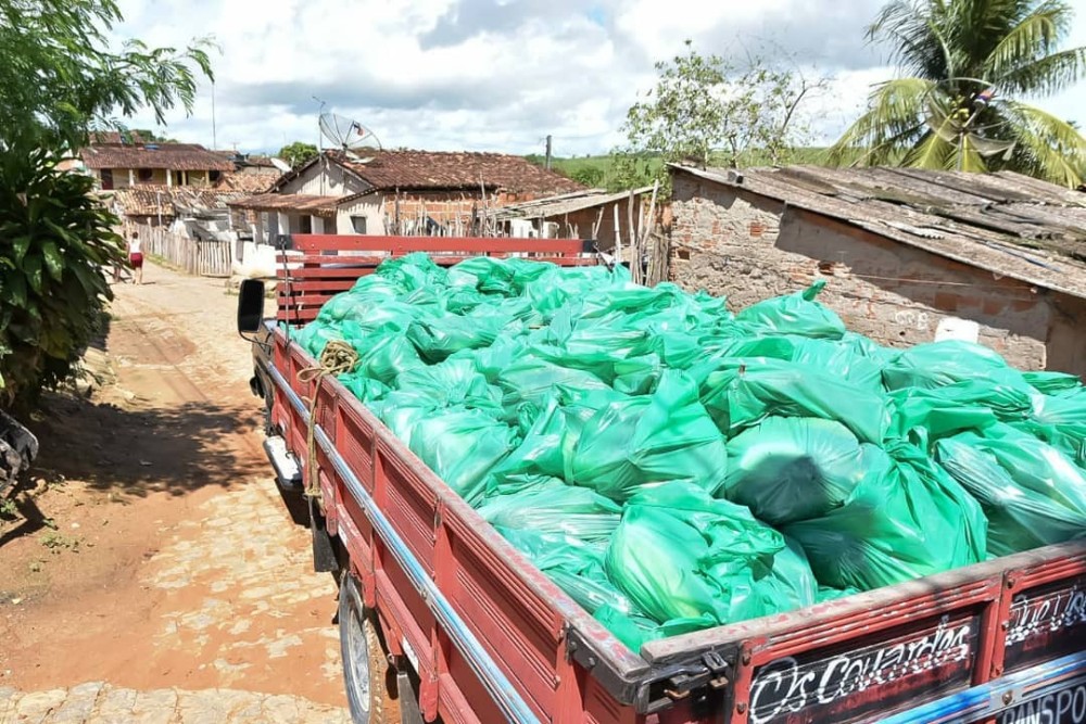 Nos kits de produtos fornecidos pela agricultura familiar contém macaxeira, inhame, batata doce, laranja pêra, banana prata e farinha, que serão distribuídos nas comunidades carentes do município, através da Secretaria Municipal de Assistência Social.