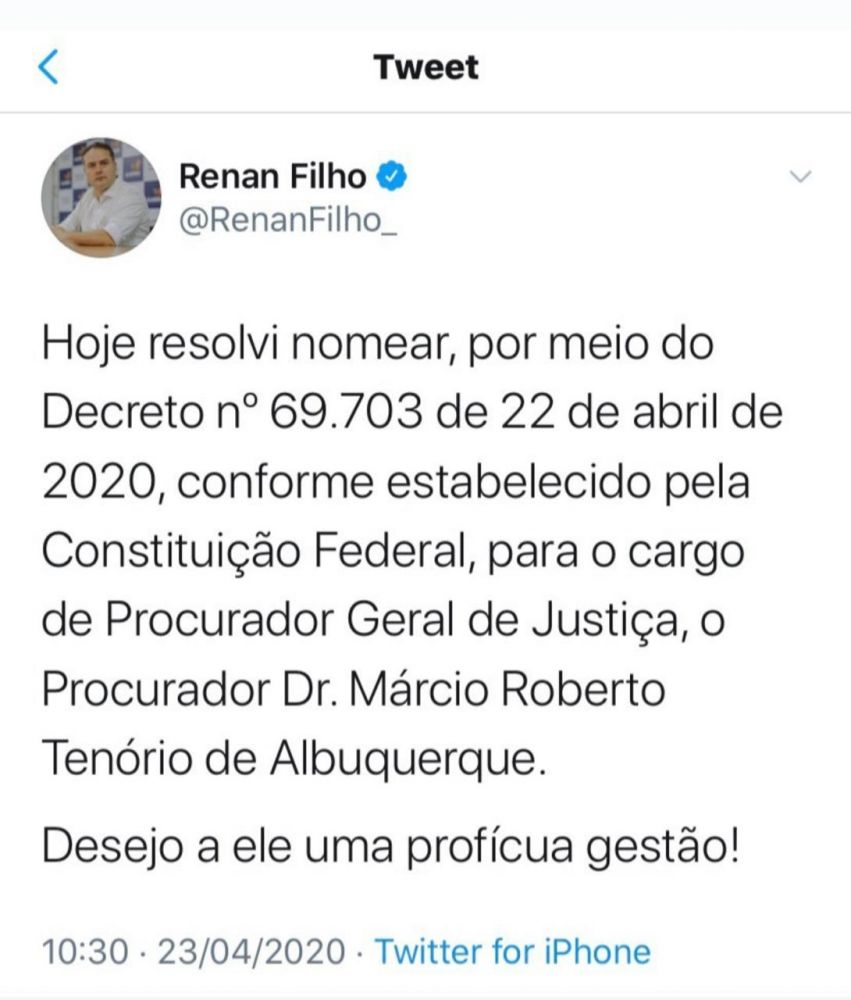 Desde a última sexta-feira (17), Márcio Roberto Tenório de Albuquerque já estava ocupando de forma interina a chefia do Ministério Público até a publicação, em diário oficial, da escolha do membro do MPAL escolhido pelo governador de Alagoas para substituir o ex-procurador-geral de justiça Alfredo Gaspar, que pediu exoneração do cargo em março último.