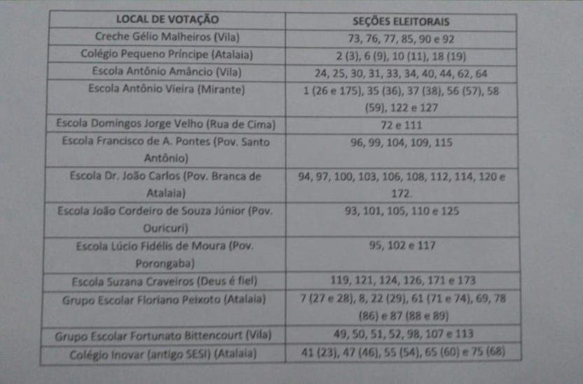 CONFIRA LOGO ABAIXO O SEU LOCAL DE VOTAÇÃO (A 6ª ZONA ELEITORAL COMPREENDE OS MUNICÍPIOS DE ATALAIA E CAPELA):