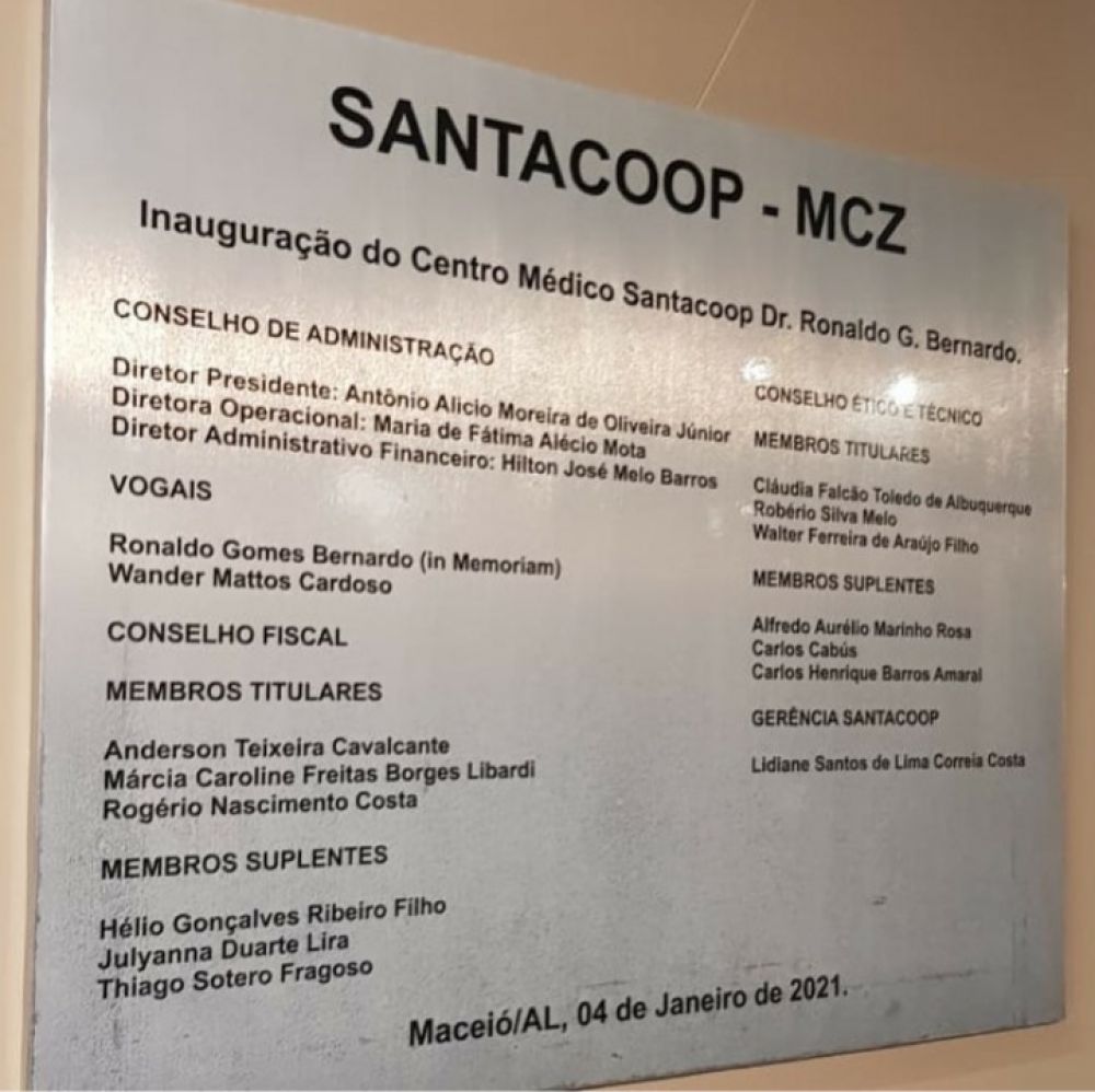 A Santacoop (Cooperativa dos Médicos da Santa Casa de Maceió) homenageou o médico atalaiense Dr. Ronaldo Gomes Bernardo, colocando seu nome no novo Centro Médico localizado no empresarial Le M'onde, em Jatiúca, Maceió. A inauguração ocorreu nesta segunda-feira (4).