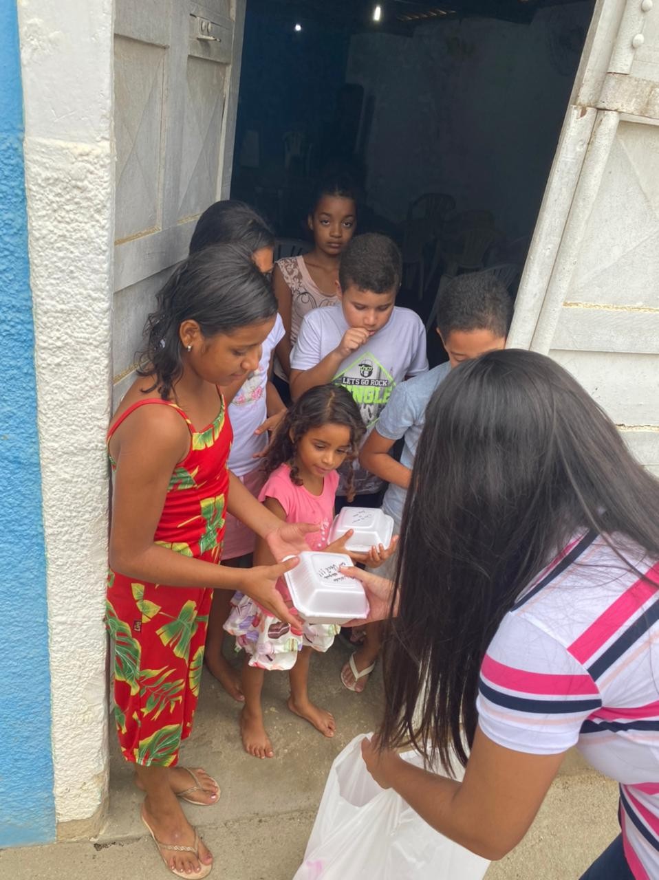 Na oportunidade, foram distribuídas aproximadamente 200 marmitinhas, preparadas com muito carinho pela aniversariante e seus familiares, com bolo de chocolate, coxinha, brigadeiro e vários outros doces que as crianças adoram.