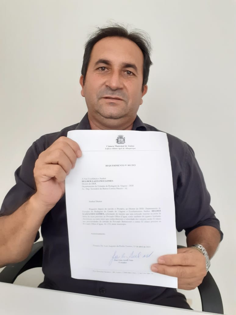 O vereador Neto Acioli (PP) vai protocolar na sessão ordinária da próxima terça-feira (13), um Requerimento de sua autoria endereçado ao senhor Helder Gazzaneo Gomes, diretor do Departamento de Estradas de Rodagem do Estado de Alagoas – DER, solicitando melhorias que tragam segurança aos que trafegam pela AL 210, que corta o município de Atalaia.