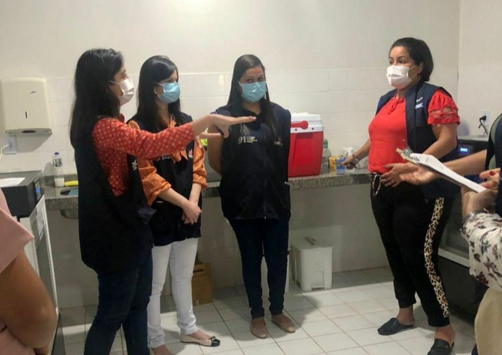 Foram analisadas a estrutura da rede de frio do município, a equipe exclusiva para a vacina Pfizer, informatização em tempo real e a estrutura da sala de vacina.