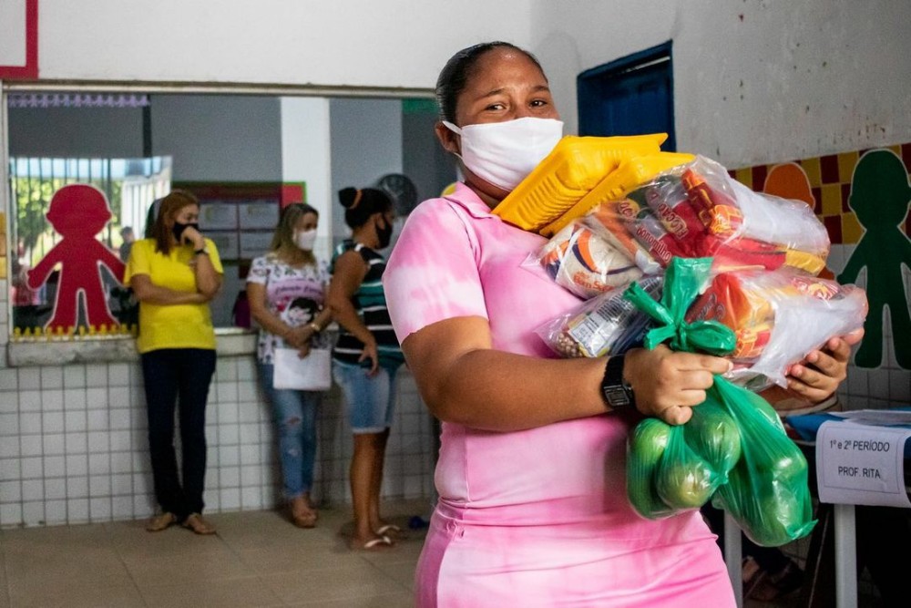 A gestão da prefeita Ceci Rocha vem realizando a entrega de um kit por aluno, contendo também proteína e frutas.