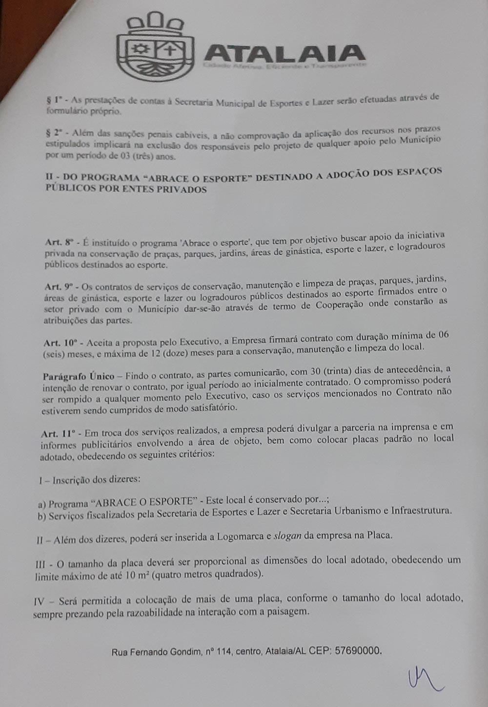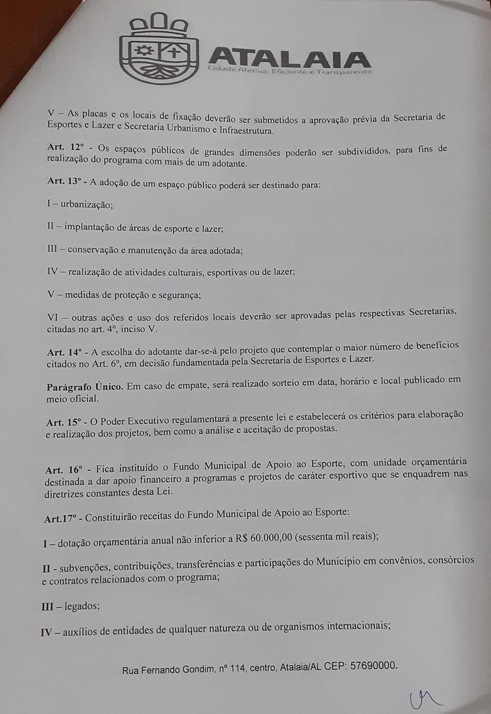 A matéria foi recentemente comentada pela secretária de esportes e lazer, Joana D’ark, em recente reunião com representantes dos times amadores do município. “Com a Lei de Incentivo ao Esporte, a gestão municipal busca se resguardar para poder oferecer as melhores condições possíveis e realizar um campeonato digno dos futebolistas atalaienses”.