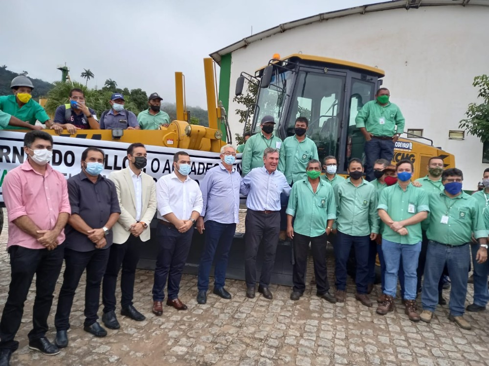 O Senador Fernando Collor esteve visitando a indústria, para realizar a entrega de uma máquina niveladora (Patrol) 0 km, conseguida pelo senador alagoano através da CODEVASF.