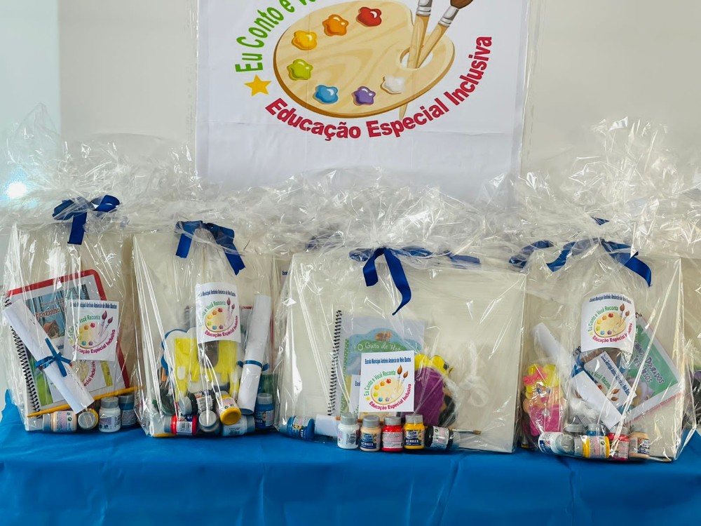 Na oportunidade, as diretoras realizaram a entrega de kits com telas, tintas e pincéis, que serão utilizados pelos alunos durante o projeto.