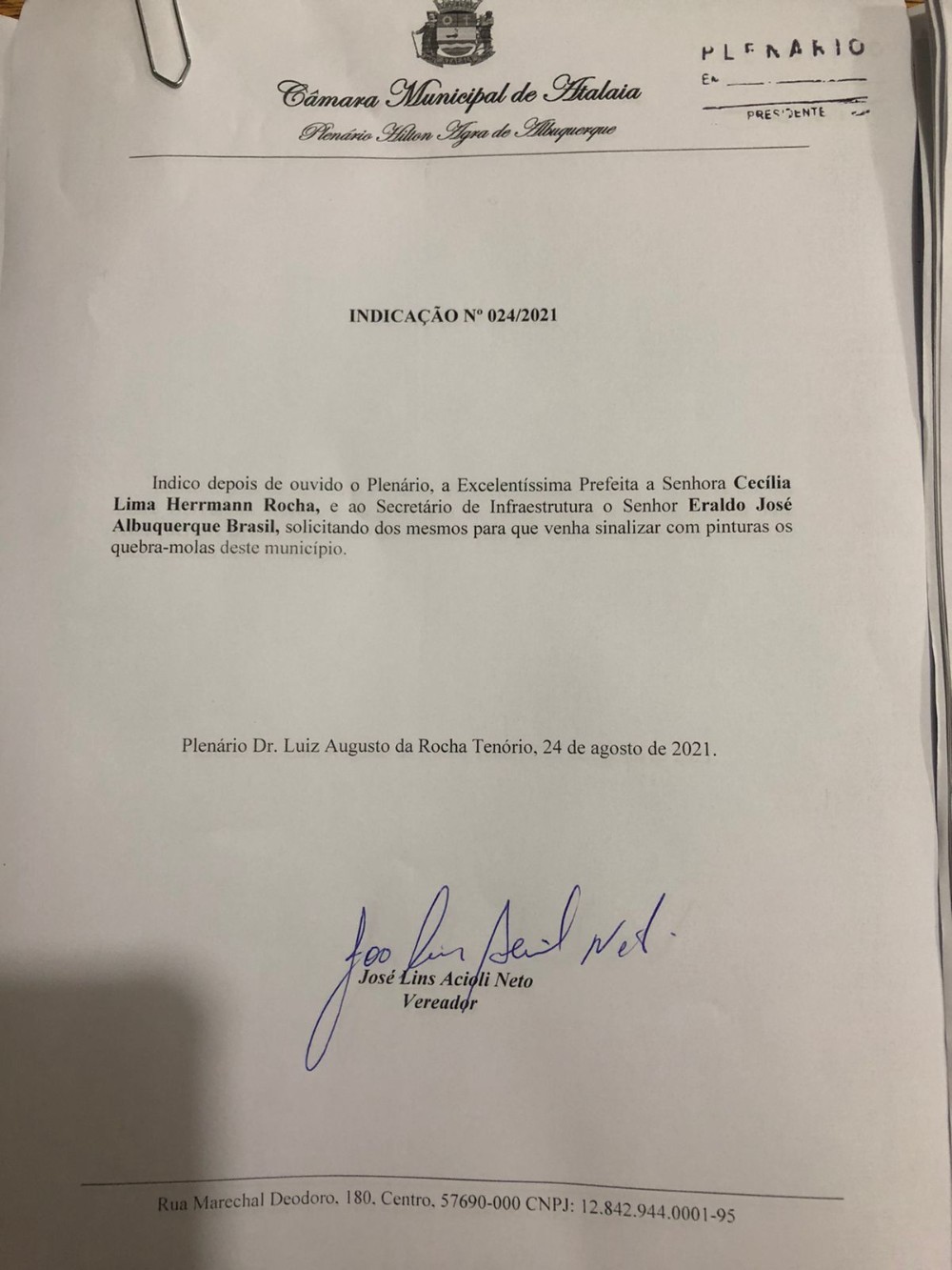A Prefeitura Municipal de Atalaia retomou nesta sexta-feira, 22, a pintura dos quebra-molas e sinalizações nas principais ruas e avenidas da cidade. A ação atende a uma Indicação feita pelo vereador Neto Acioli (PP), através da Indicação 024/2021.