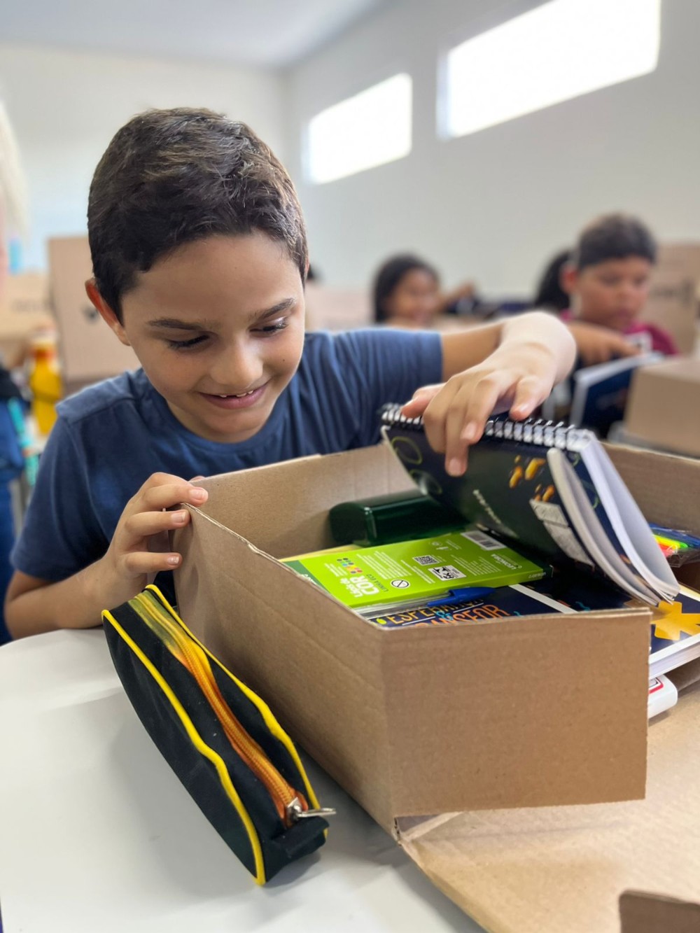 Os kits escolares deste ano ganharam um reforço. Os alunos contam com agenda, cadernos, lápis de cor, hidrocor, borracha, cola, tesoura, estojo, entre outros artigos escolares.