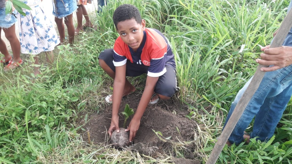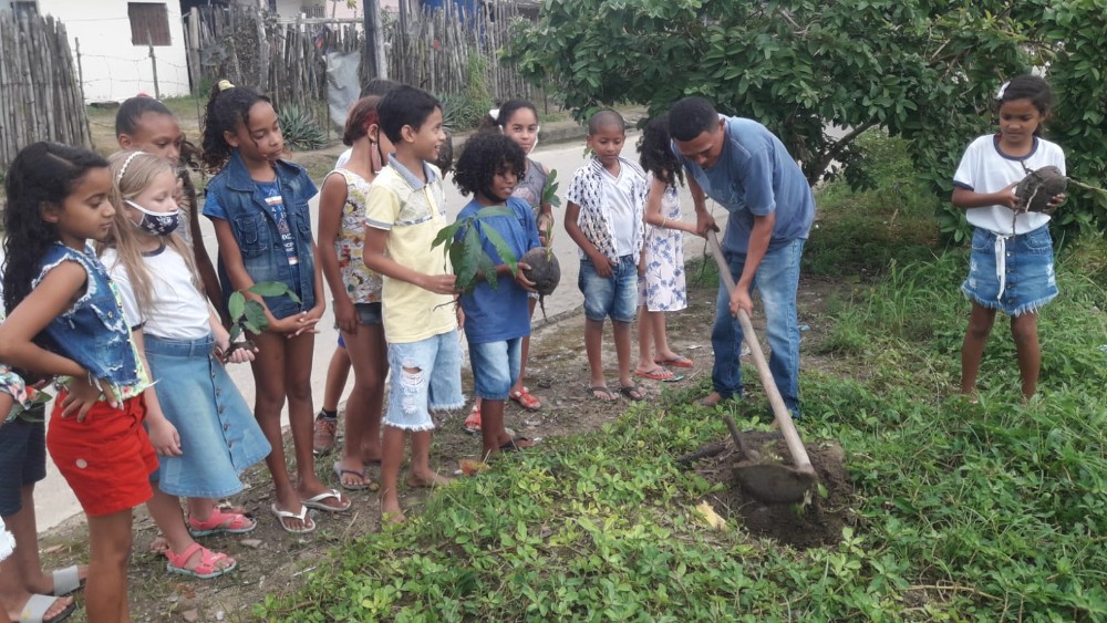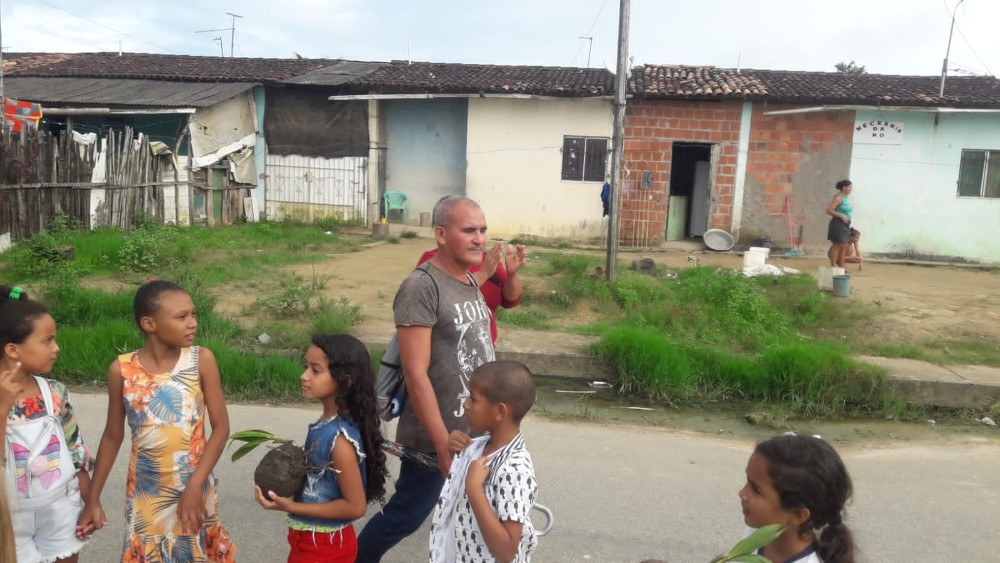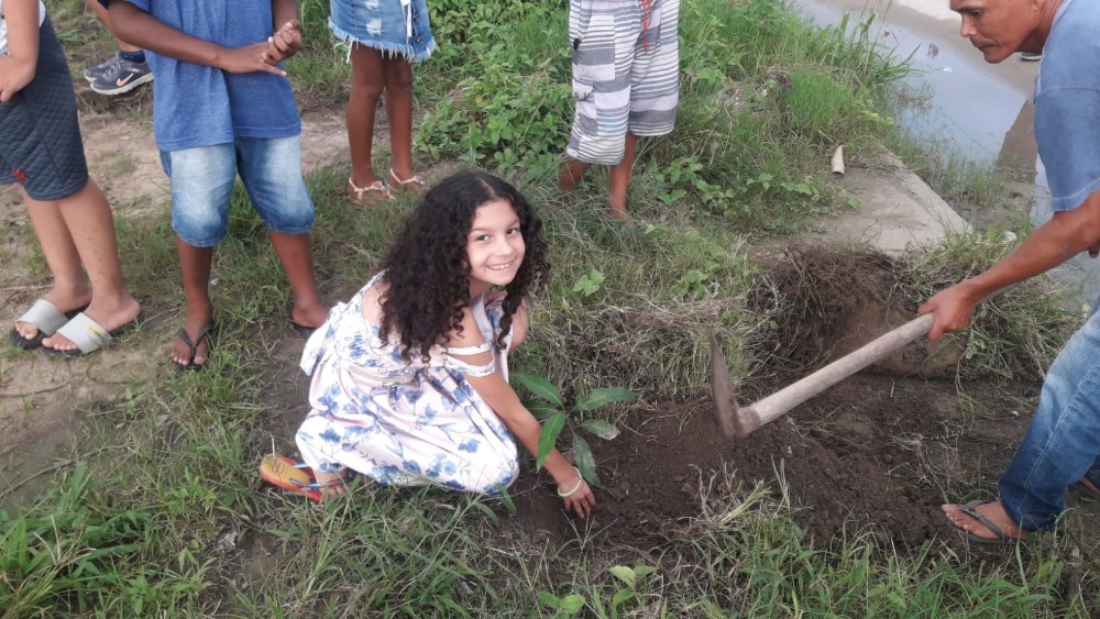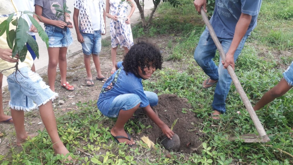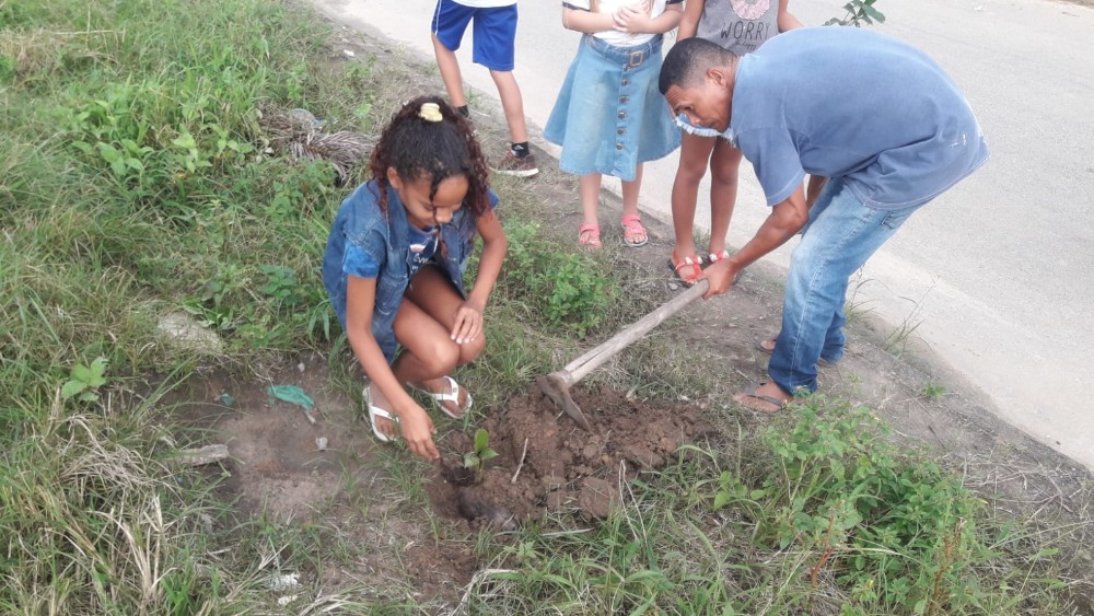 E, para terminar a semana, foi realizado um momento de plantio de mudas ao redor do campo do Conjunto Deus É Fiel, a fim de promover um ambiente mais arborizado.