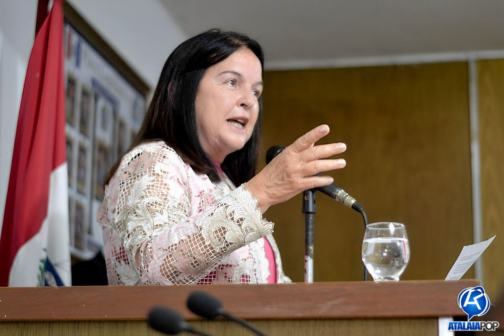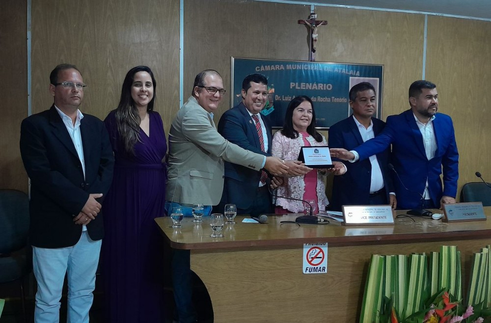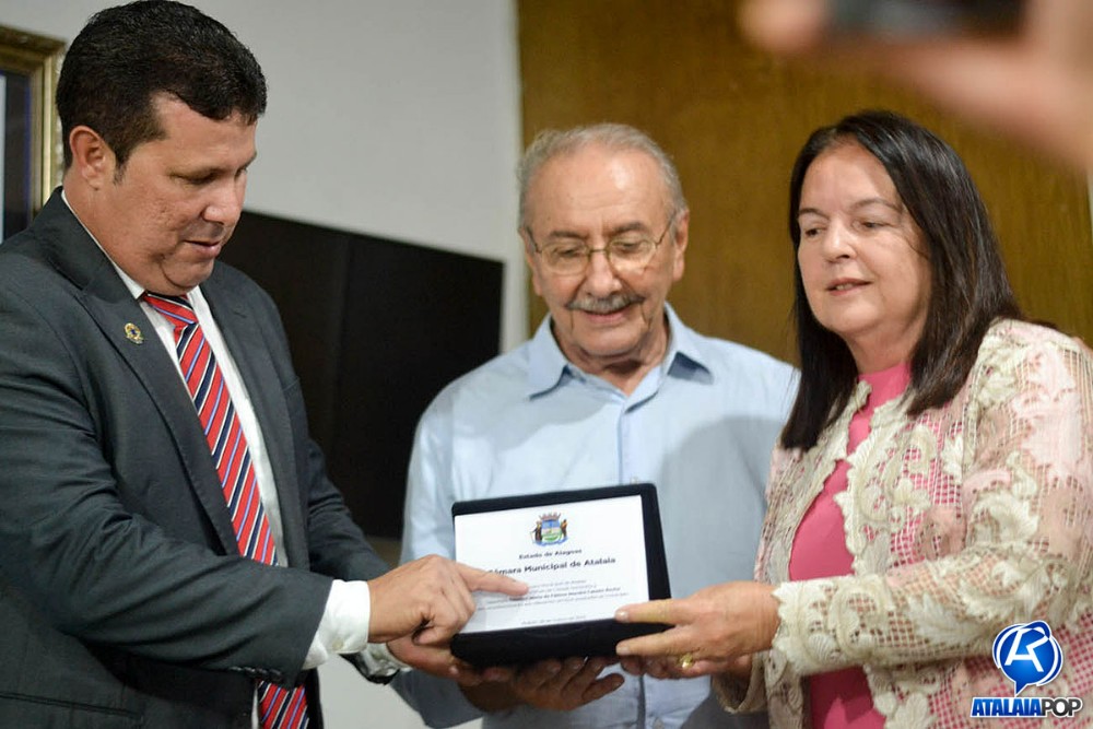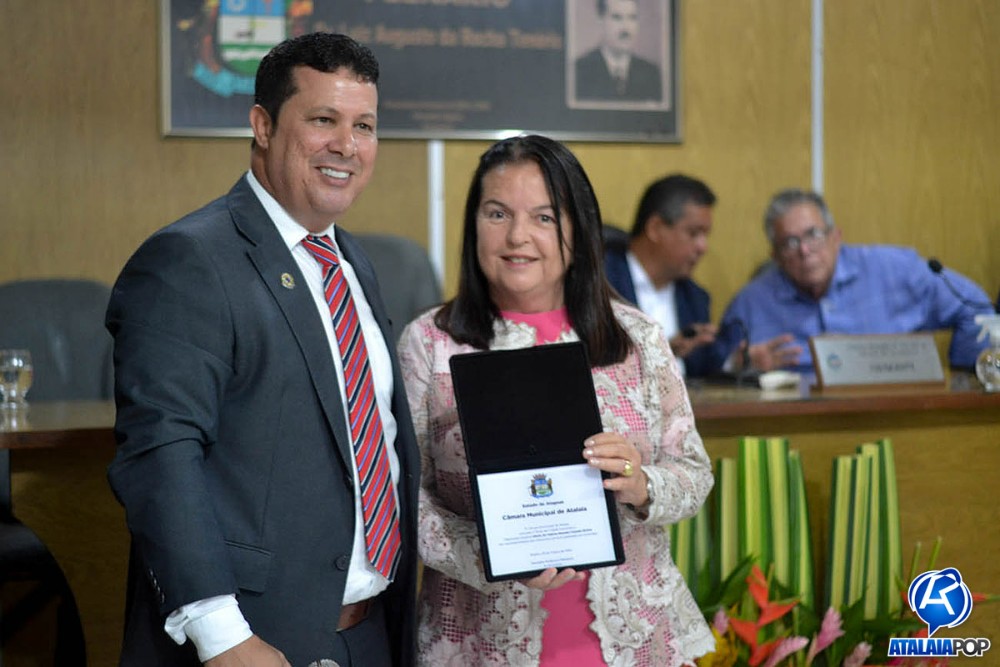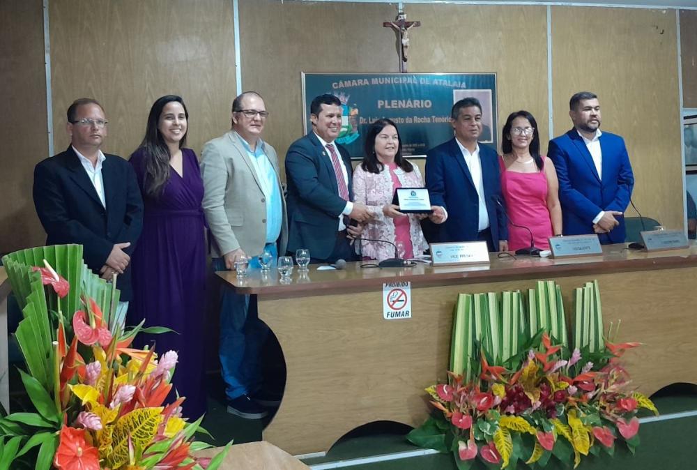 Em sessão solene realizada na manhã desta quinta-feira (28), a Câmara Municipal de Atalaia realizou a entrega do Título de Cidadã Honorária de Atalaia à deputada estadual Fátima Canuto, pelos relevantes serviços prestados à comunidade atalaiense ao longo dos últimos anos. A honraria foi proposta pelo vereador Anderson Medeiros (PSSB), sendo aprovada por unanimidade.