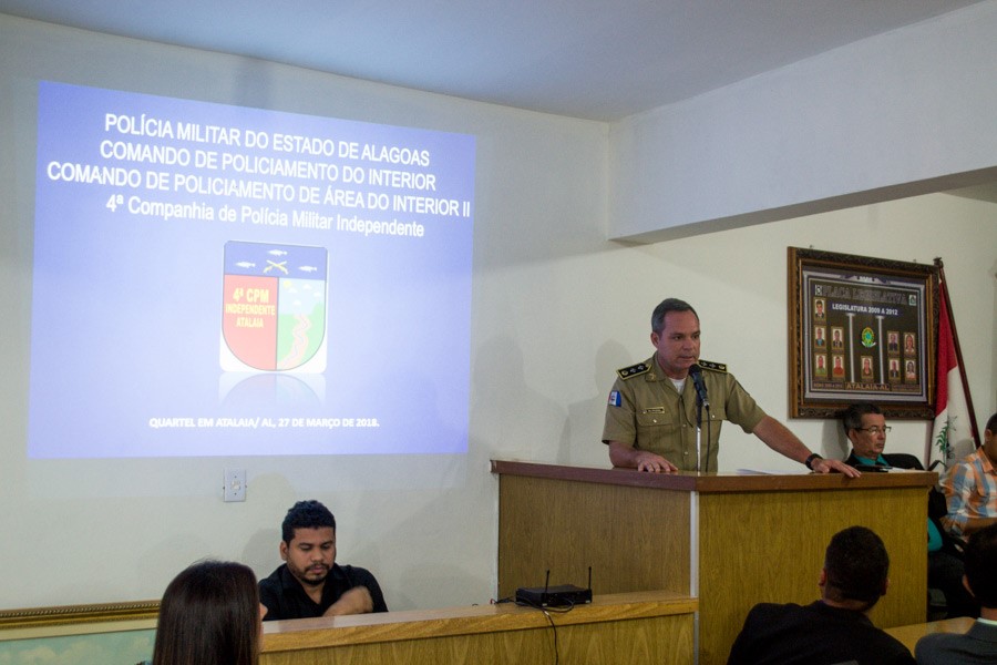 Preocupado com a segurança pública no município de Atalaia, o Vereador Toni Barros (PV) convocou o Comandante da 4ª Companhia Independente de Policia Militar do Estado de Alagoas, o Major Braga, para apresentar explicações sobre os resultados das ações que vem sendo realizadas pela Companhia. E, em atendimento a este convite, o Comandante esteve presente na sessão ordinária desta terça-feira (27).
