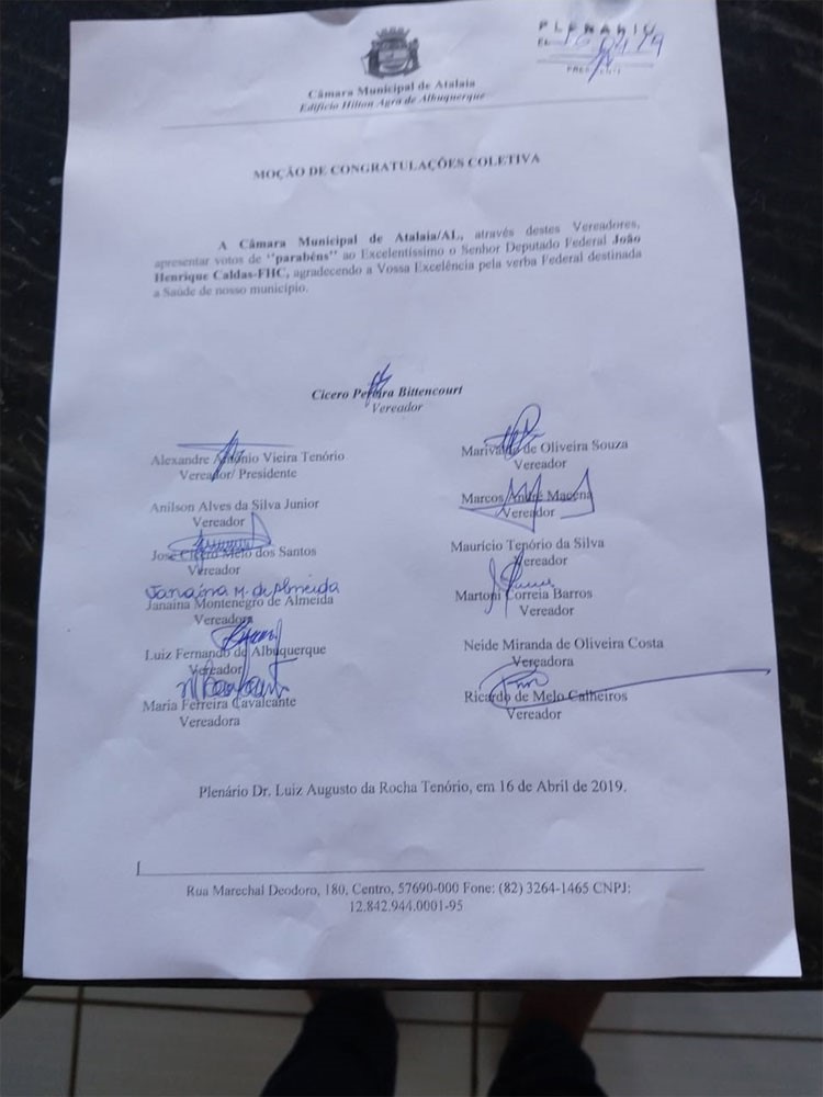 “Como vereador, quero agradecer o empenho do deputado JHC na melhoria da saúde de nossa cidade. Mandar uma Moção de Parabéns em nome do povo de Atalaia. Mas, também lembrar a ele que esses recursos que mandou foi do seu outro mandato. Desse atual mandato, que começou em fevereiro, ele ainda está em débito com Atalaia, onde teve 2.739 votos”, destacou o vereador, autor da Moção de Congratulações Coletiva.