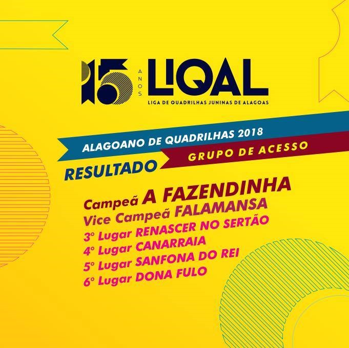 Ainda não foi dessa vez que Atalaia voltará a ter representante no Grupo Especial do Alagoano de Quadrilhas Juninas. Segunda Quadrilha a se apresentar na grande final do Grupo de Acesso, realizado na noite deste sábado, dia 30 de junho, a Junina Sanfona do Rei, apesar da linda e empolgante apresentação, não conseguiu convencer os jurados de que merecia uma das quatro vagas que garantiria o seu acesso à primeira divisão em 2019.