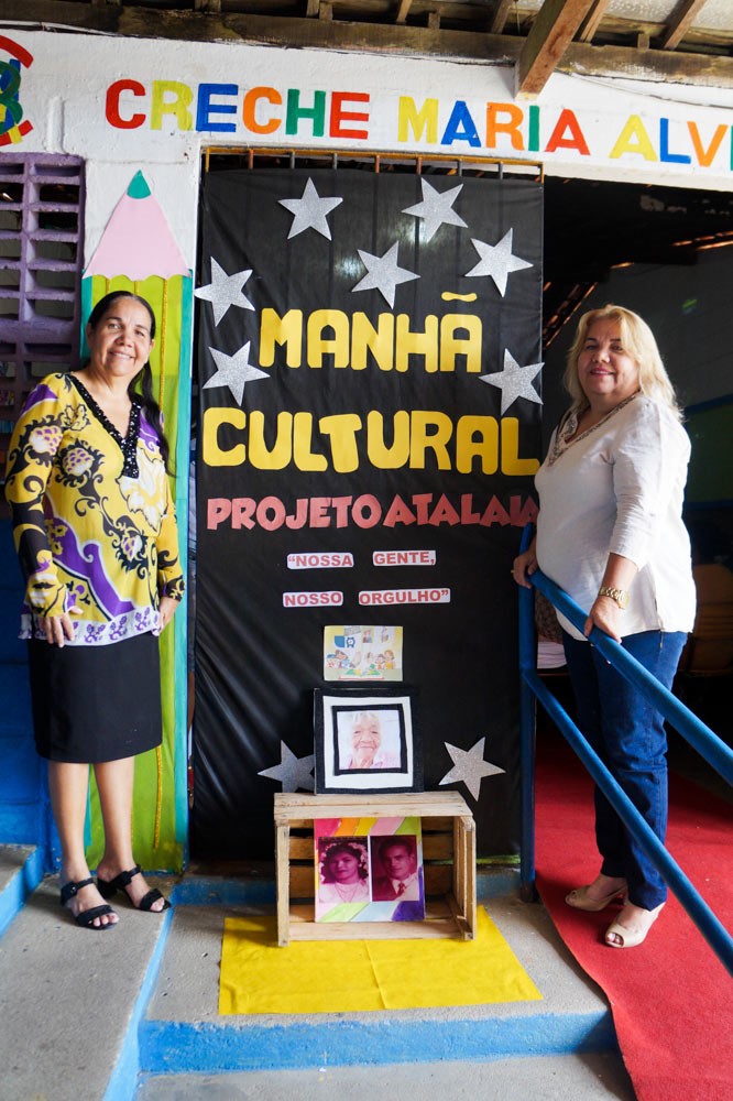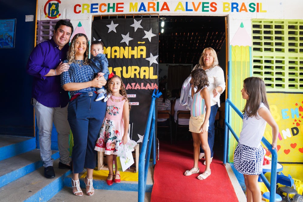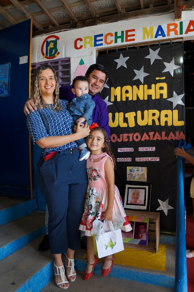 Foi uma verdadeira manhã cultural promovida pela Creche Maria Alves Brasil, que contou com exposição de trabalhos, apresentações teatrais das crianças, que também emocionaram a todos cantando o Hino da cidade de Atalaia, acompanhadas musicalmente pelo artista da terra, o Cal. Também foi apresentado um vídeo com fotos da Patrona ao lado de seus familiares.