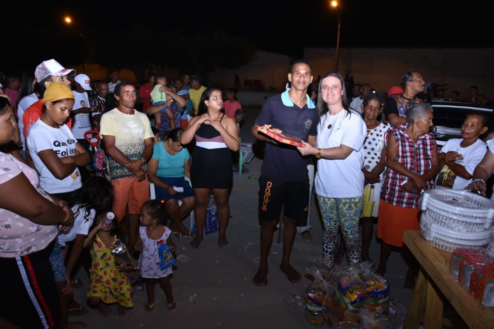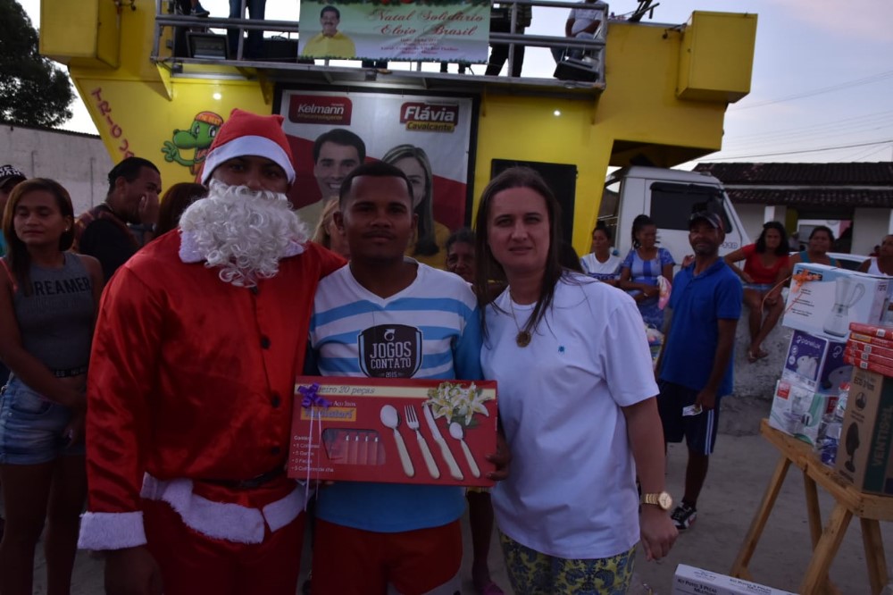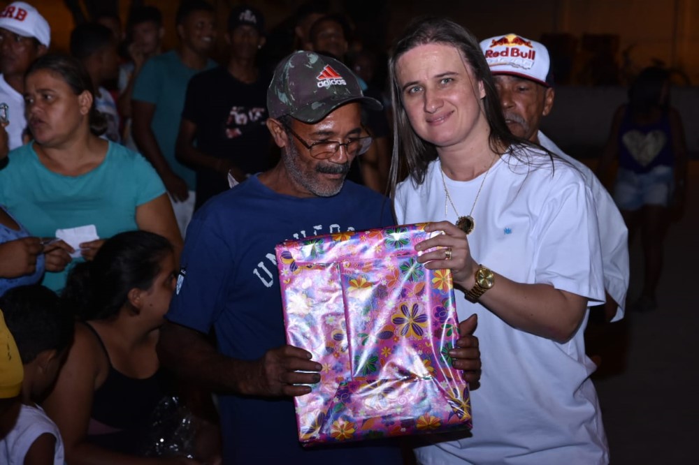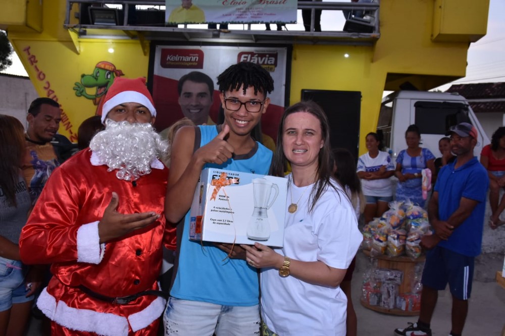“Queria agradecer também aos meus amigos que sempre abraçam comigo todas essas ações, que mesmo numa véspera de Natal, deixaram o aconchego de seus lares, para estarem junto conosco. Júnior, Douglas, Pipo, Marcony, Misso, Gerson, Corujão, Luiz, Nova, Gemada e Dí, que nunca me deixam só. Agradecer ao Douglas “Pesseguidor”, que fez de forma muito contagiante a animação da festa. As atrações Adelson e Guinho Farra. A minha comadre Karine que abriu a festa tão brilhantemente, a qual agradeço por tanto apoio e dedicação, extensivos ao meu compadre Val Famia. Mille, amiga-irmã que me surpreendeu com sua desenvoltura no microfone e comandou parte do sorteio. A minha cunhada Nem Brasil pelas dicas para realizar de forma ágil a condução do sorteio, pois já está acostumada com o volume de pessoas nos sorteios das festas de Natal da vereadora Camyla Brasil. Aos meus compadres, amigos e irmãos Kelmann Vieira e Flávia Cavalcante por mais uma vez estarem comigo em mais esta homenagem ao nosso eterno ELVIO BRASIL. Ao Chico e Rosiane, por cederem o espaço do Campo de Futebol para realizarmos o evento. Enfim, obrigado a todos que participaram de forma direta ou indireta. Se Deus quiser, ano que vem teremos a segunda edição. A todos, um Feliz Natal e um 2020 cheio de Paz e Realizações”, destacou Walkyria Ferro.